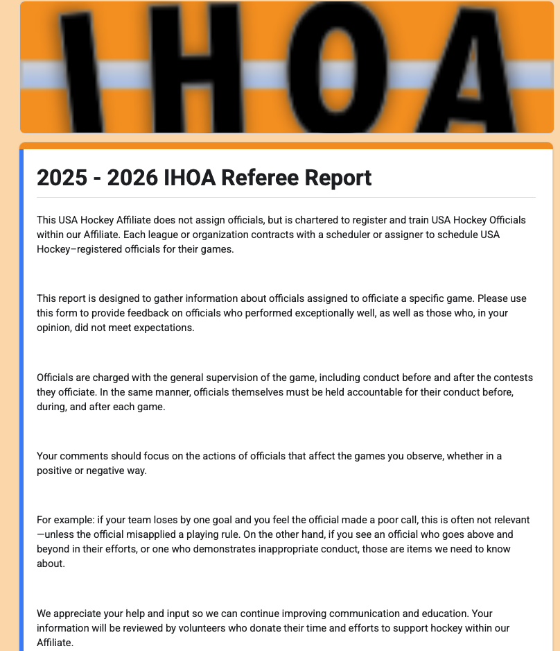 As part of this program IHOA officials get to meet with the NHL on-ice officials before the game, skate pre-game hot laps, and join them at center ice for the National Anthem(s).
