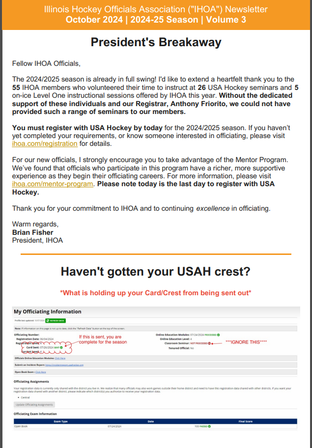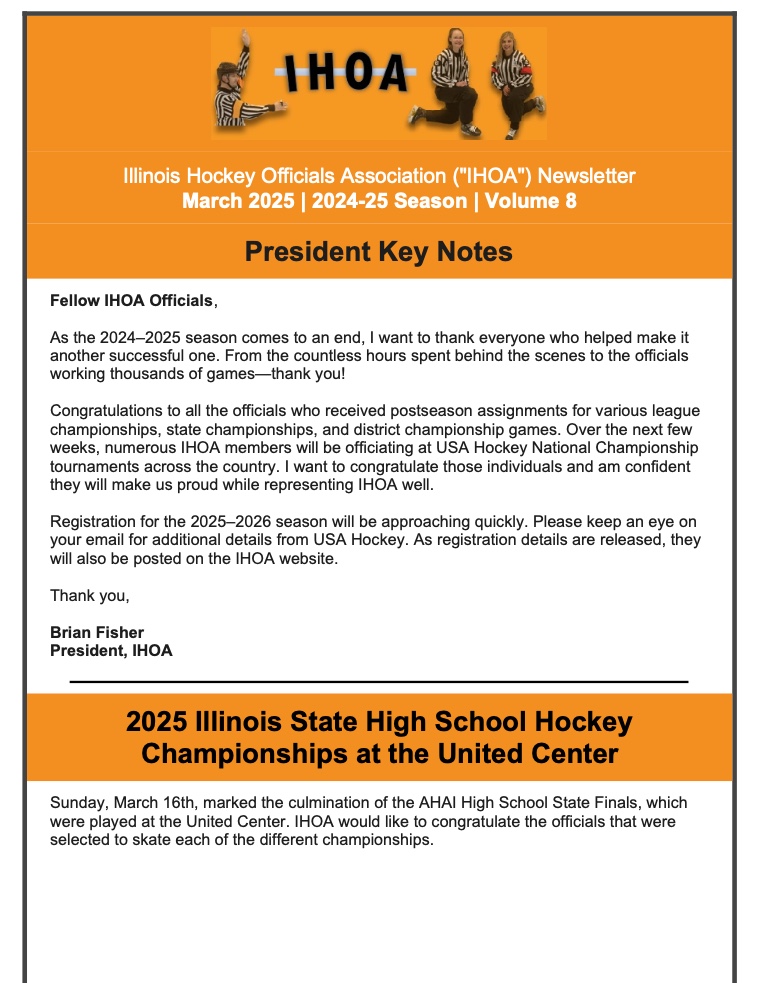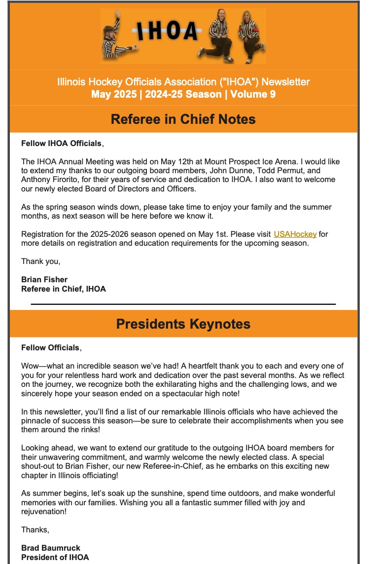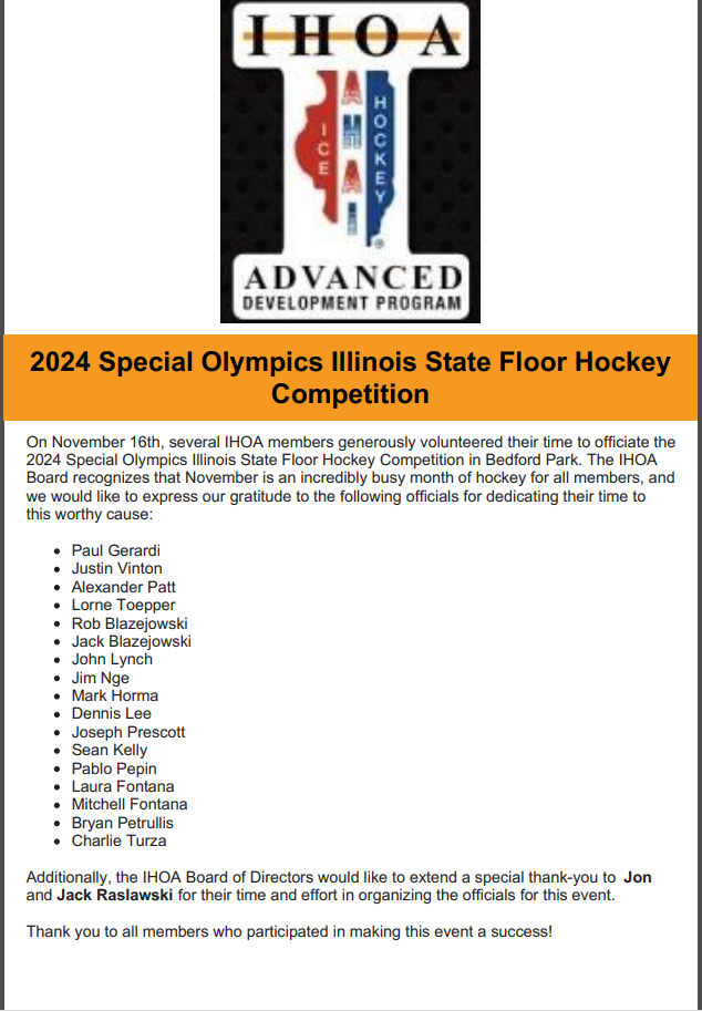 The IHOA Annual Meeting took place on 5/13/2024 at the Naperville Marriott   Featuring key remarks from: Annual Meeting Welcome by Brian Fisher AHAI Update by John Dunne Warrior Hockey […]