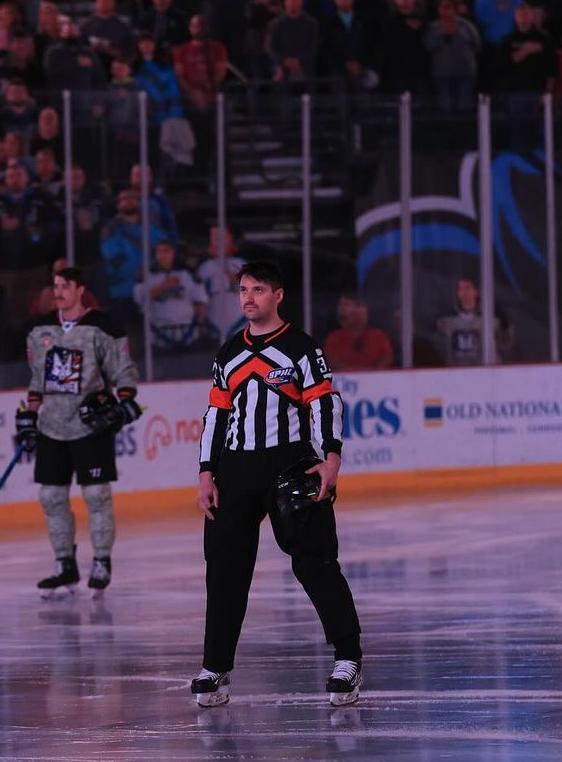 Eric quickly became a dedicated student of the game, learning from many experienced officials in the Atlantic District. His officiating career progressed rapidly, leading him to officiate the high school All-Star game and high school playoffs in 2015. In 2016, he relocated to the Midwest for work, where his officiating career began to flourish. He was selected to work the U18 Tier II National Championships in 2021 and refereed the Illinois Girls High School State Championship game in 2023. Eric joined the NCHA (NCAA Division III) as a linesman during the 2022/23 season and began officiating as a linesman for the minor-pro Federal Prospects Hockey League (FPHL) in the 2023/24 season.